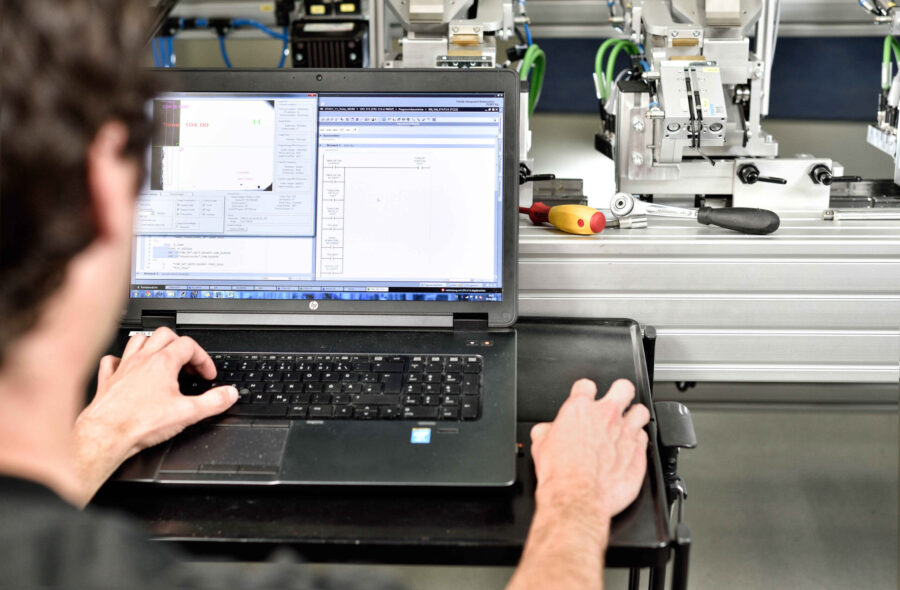 Um Ihnen eine perfekt funktionierende Maschine übergeben zu können, führen wir verschiedenste Tests und Kontrollen der verketteten Prozesse durch. Hierzu zählen die grundlegenden Prüfungen nach VDE, um die elektrische Sicherheit der Maschine zu gewährleisten, als auch allgemeine und projektspezifische Funktionstests.